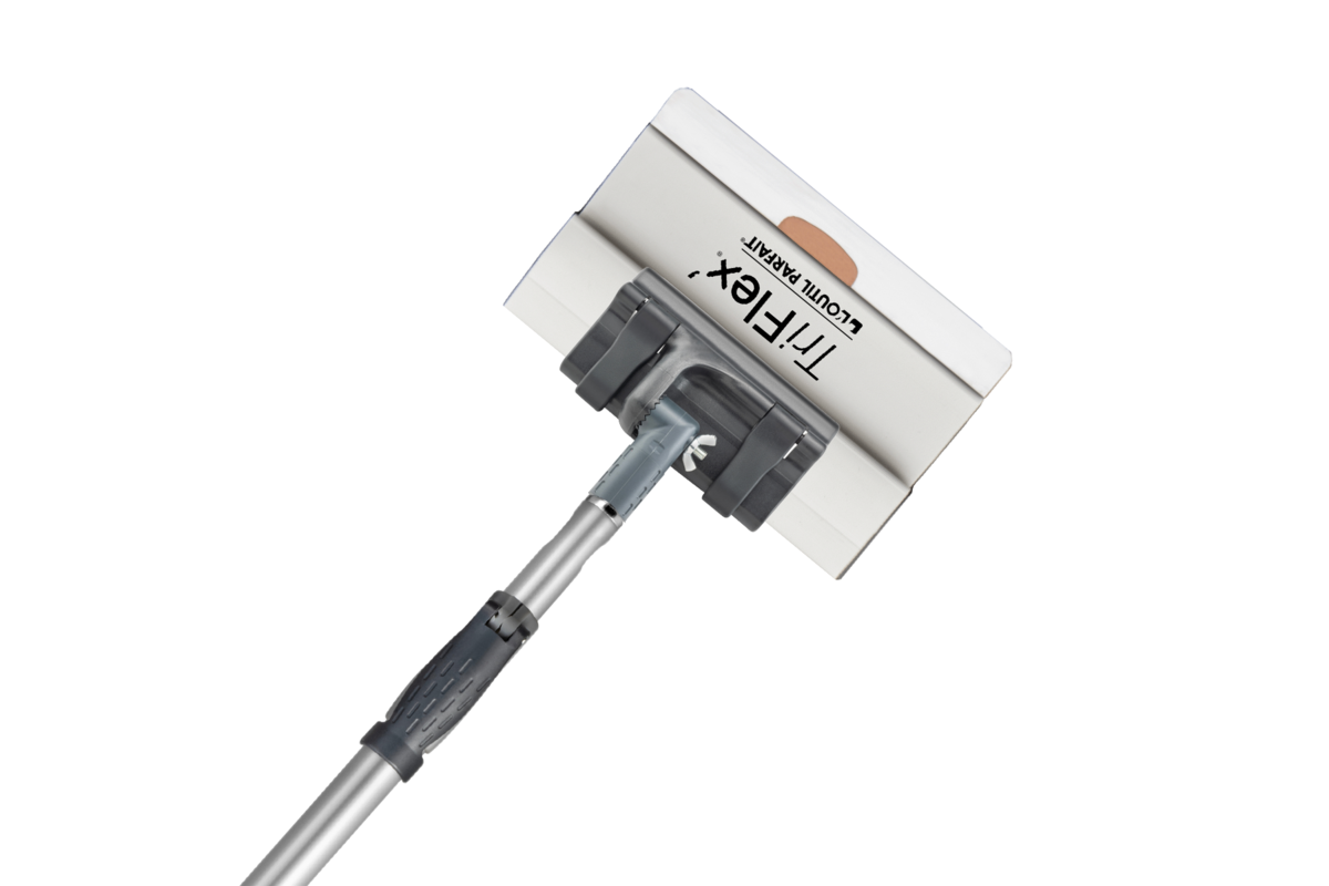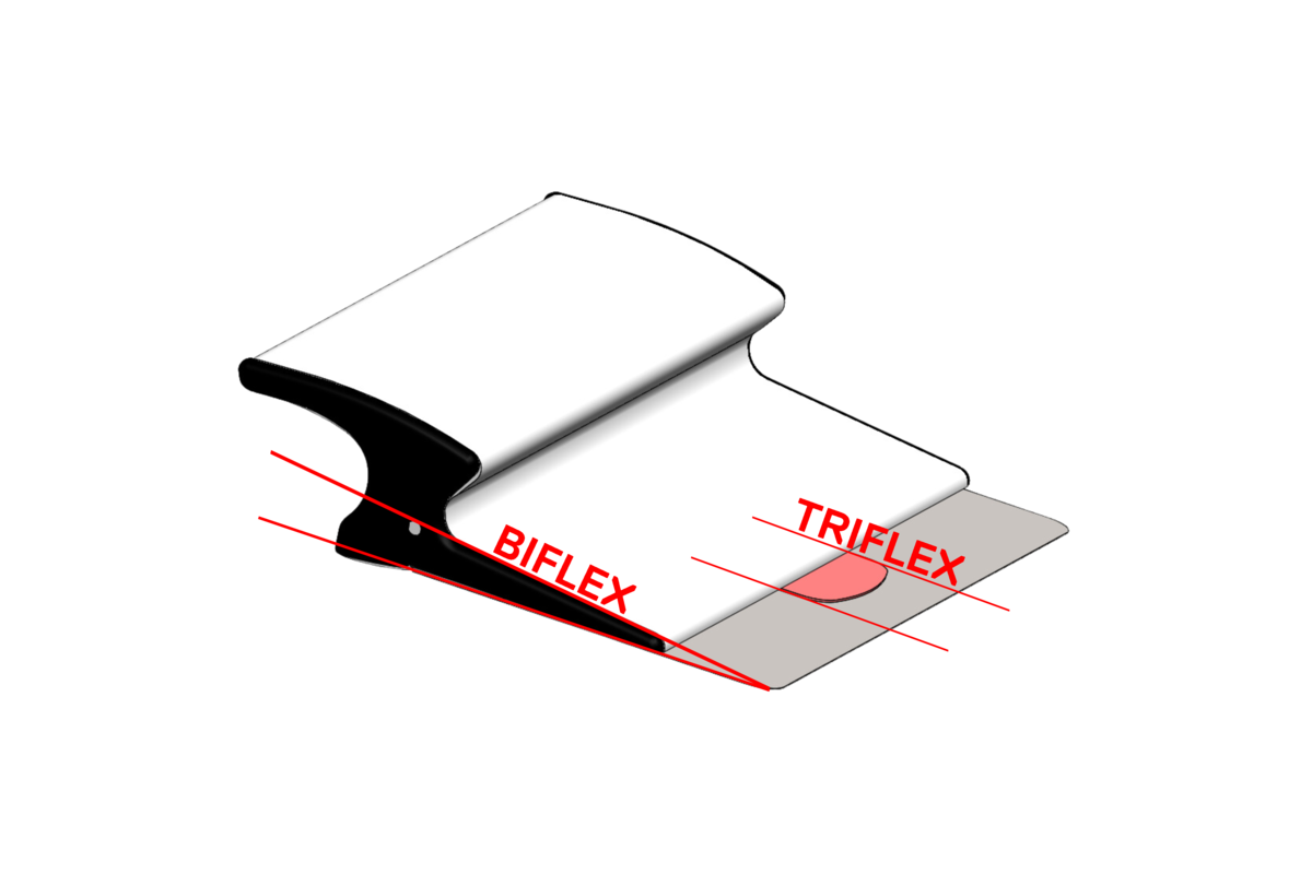 Con Tecnología TriFlex’®: el punto central de apoyo técnico proporcionado por la contracuchilla rígida, la rectitud del perfil combinada con la flexibilidad de la cuchilla evita la fatiga de la muñeca – Pegado de la tira y alisado perfectamente uniforme en todo el ancho – Alta productividad